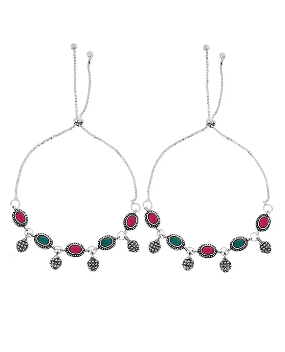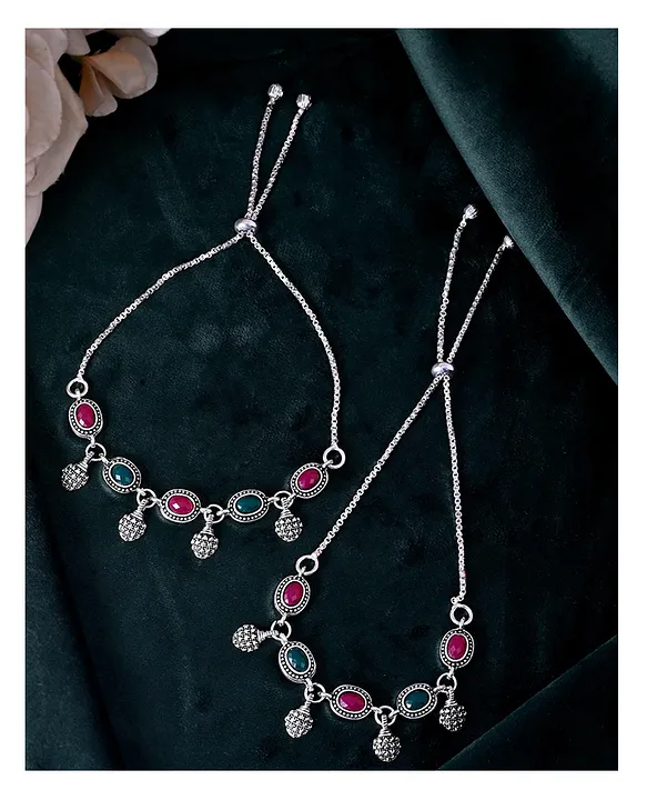 Quality – Set Of 2 Silver-Plated Artificial Stones Studded Anklet, That make you look stylish.