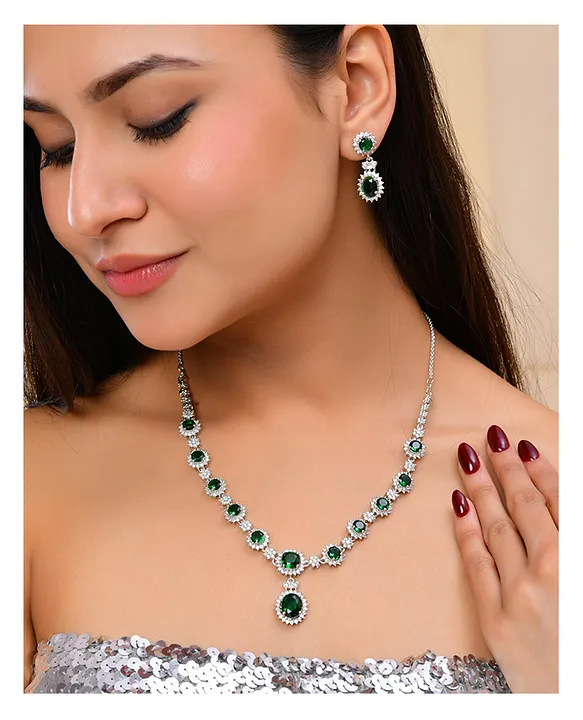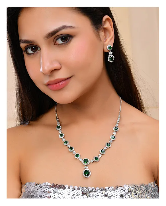 Quality – Silver Plated Green AD Stone Studded Jewellery Set, That make you look stylish.
